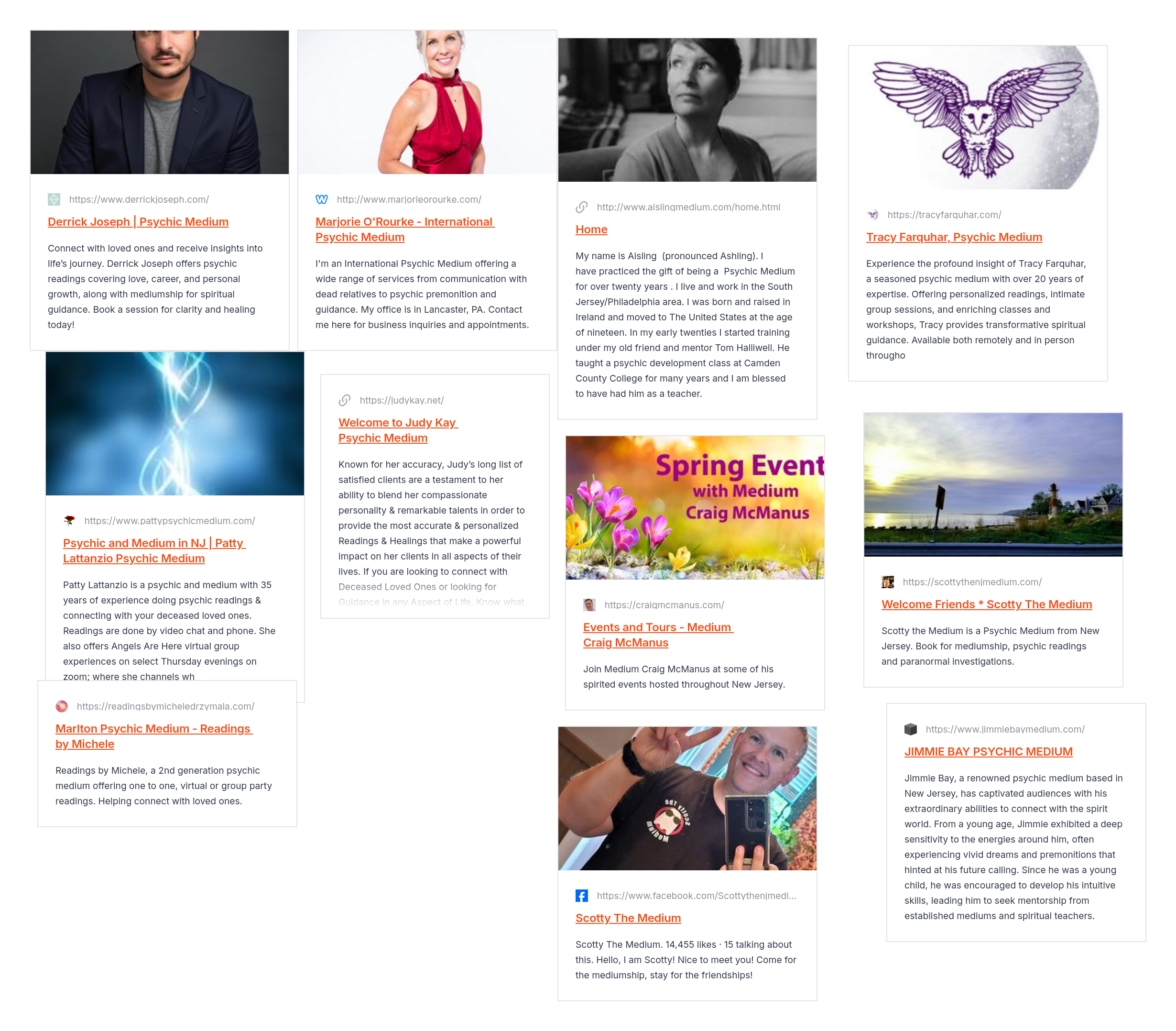 psychic mediums on the map! Discover highly rated psychic mediums in the great state of New Jersey....in your city, town or neighborhood. Coming Spring 2026